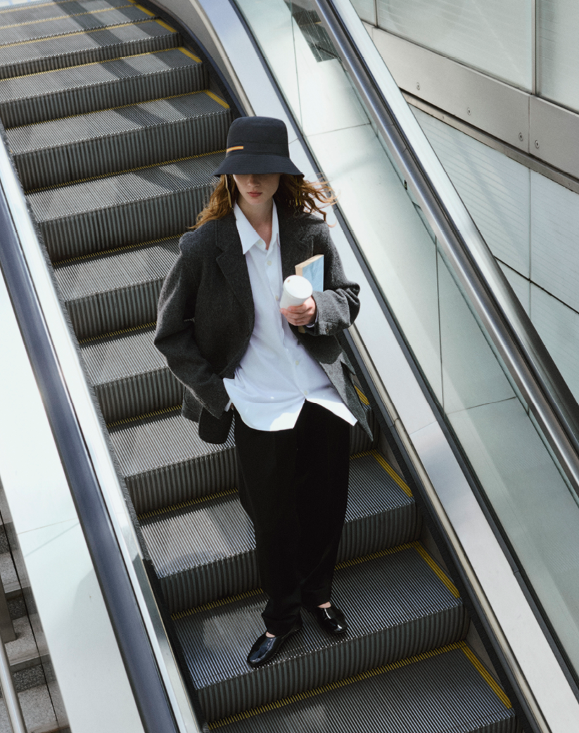 it : the Wes reversible sleeveless waistcoat, the Murray short hooded jacket with a front pocket like a pea coat, the Tuesday bag and the Sienne bucket hat. An everyday wardrobe characterised by clean lines, supple technical fabrics and a subtle colour palette.