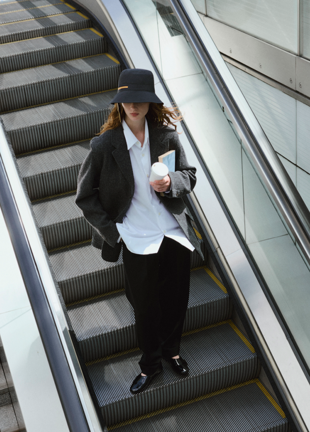 The iconic Pradel trench coat with its loose fit is available in two colours: mastic and anthracite. A new wardrobe is taking shape around