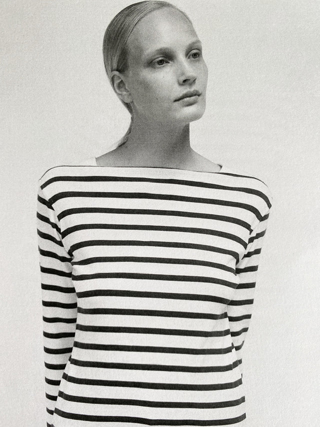 Made in Portugal from pure organic cotton, the Soeur T-shirt is the ideal basic that suits all body types. Its carefully designed shape and collar, designed to slip under a jumper and reveal itself, make it an everyday essential.