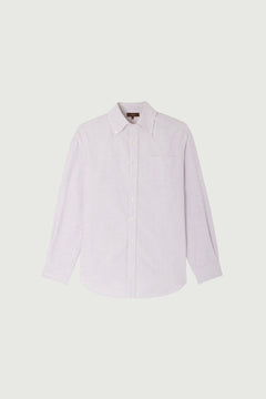 ISAMU is a straight jumper with a round neckline, knitted in a shetland virgin wool yarn. Reminiscent of English clothing, its colours are made from mottled yarns that reveal nuances in their shades: a beautiful mottled beige basic, a blue with touches of grey, a purple that recalls Soeur's identity, and a warm caramel brown.