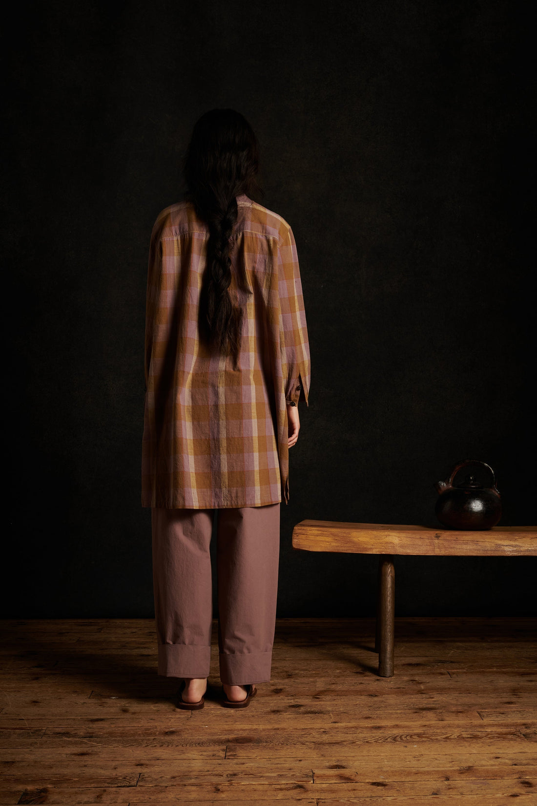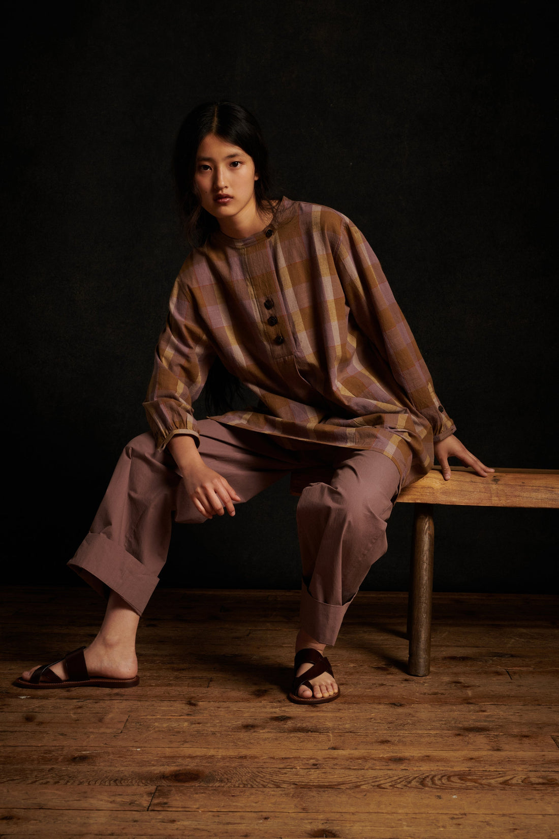Checked cotton voile dress mauve